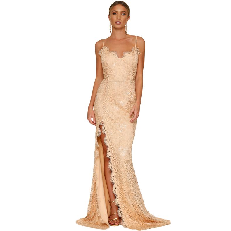Keeva Maxi Bridesmaids Wedding Dress Nude By Lace Beads