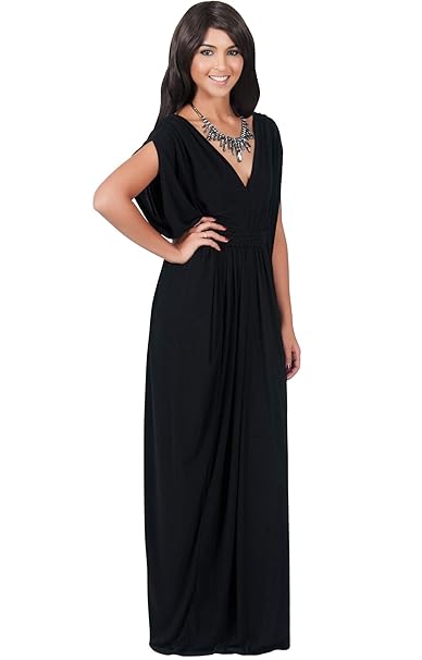 Koh Koh Womens Long V Neck Summer Sexy Gown Grecian Flowy Sleeveless Maxi Dress