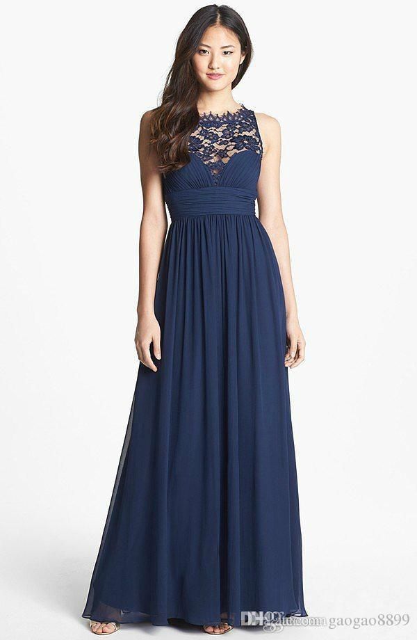 Us 89 1 10 Off Cheap Navy Blue Long Wedding Guest Bridesmaid Dresses Lace Chiffon Sheer Neck Plus Size Summer Maid Of Honor Bridal Gowns In