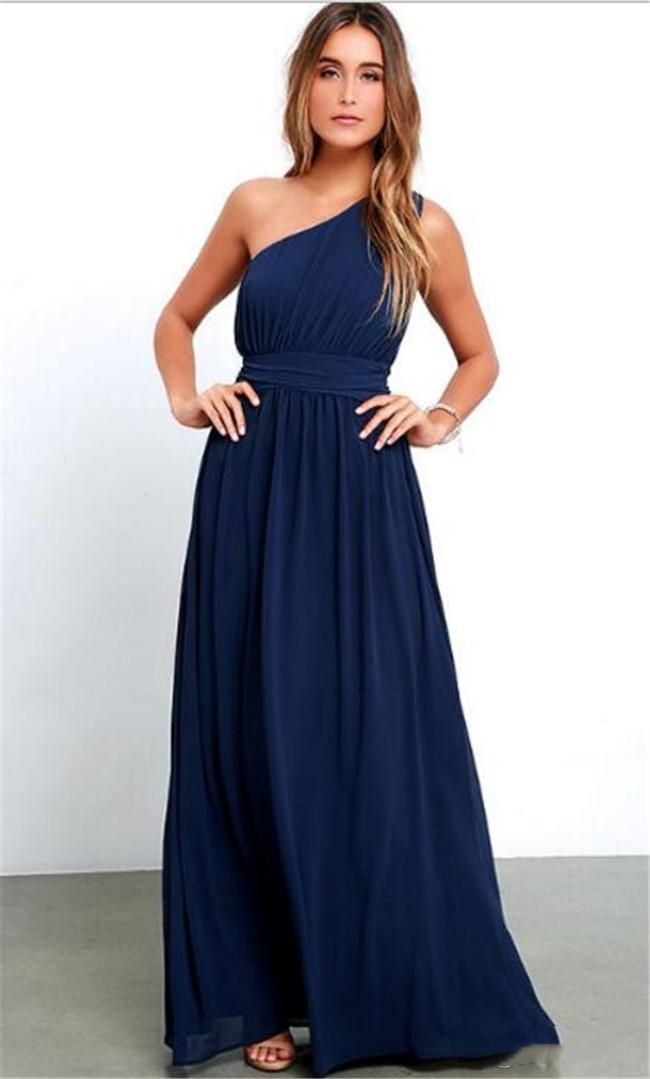 2018 Navy Blue Charming Bridesmaid Dresses One Shoulder Chiffon Long Wedding Guest Wear Floor Length Vestidos Plus Size Maid Of Honor Cheap Lace