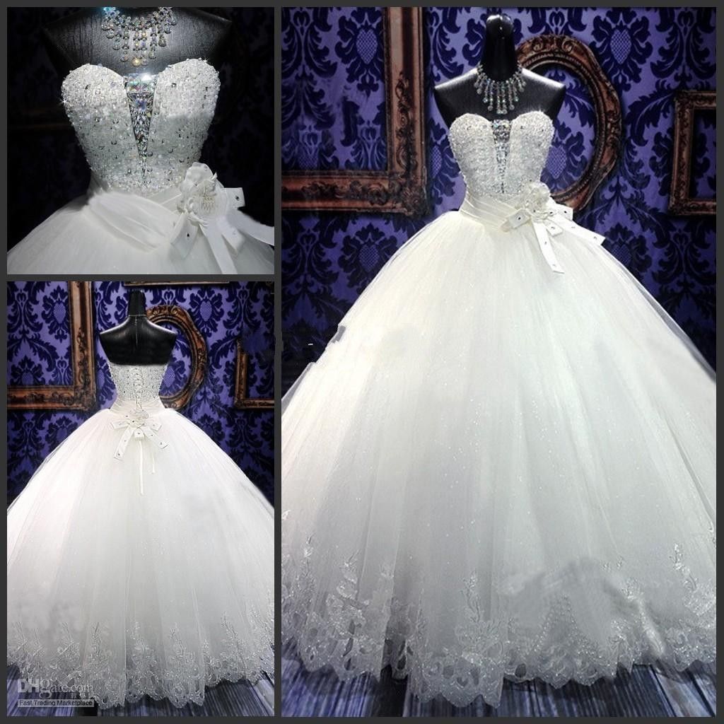 Hot Sell Princess Wedding Dresses 2019 Spring Elegant Ball Gowns Bling Beaded Crystal Sweetheart Neck Lace Up Puffy Quinceanera Tulle Dress