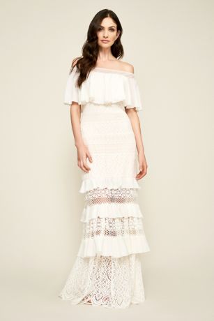Ocean themed wedding dress. Brides say yes to the dress fit and flare to ballgown blush to champagne boho to modern beading and lace. Yes you can wear a jumpsuit as a wedding guest. Wearing a gorgeous flowy wedding dress kick off your shoes feel the sand between your toes enjoy a beautiful sunrise and sunset with your loved ones.