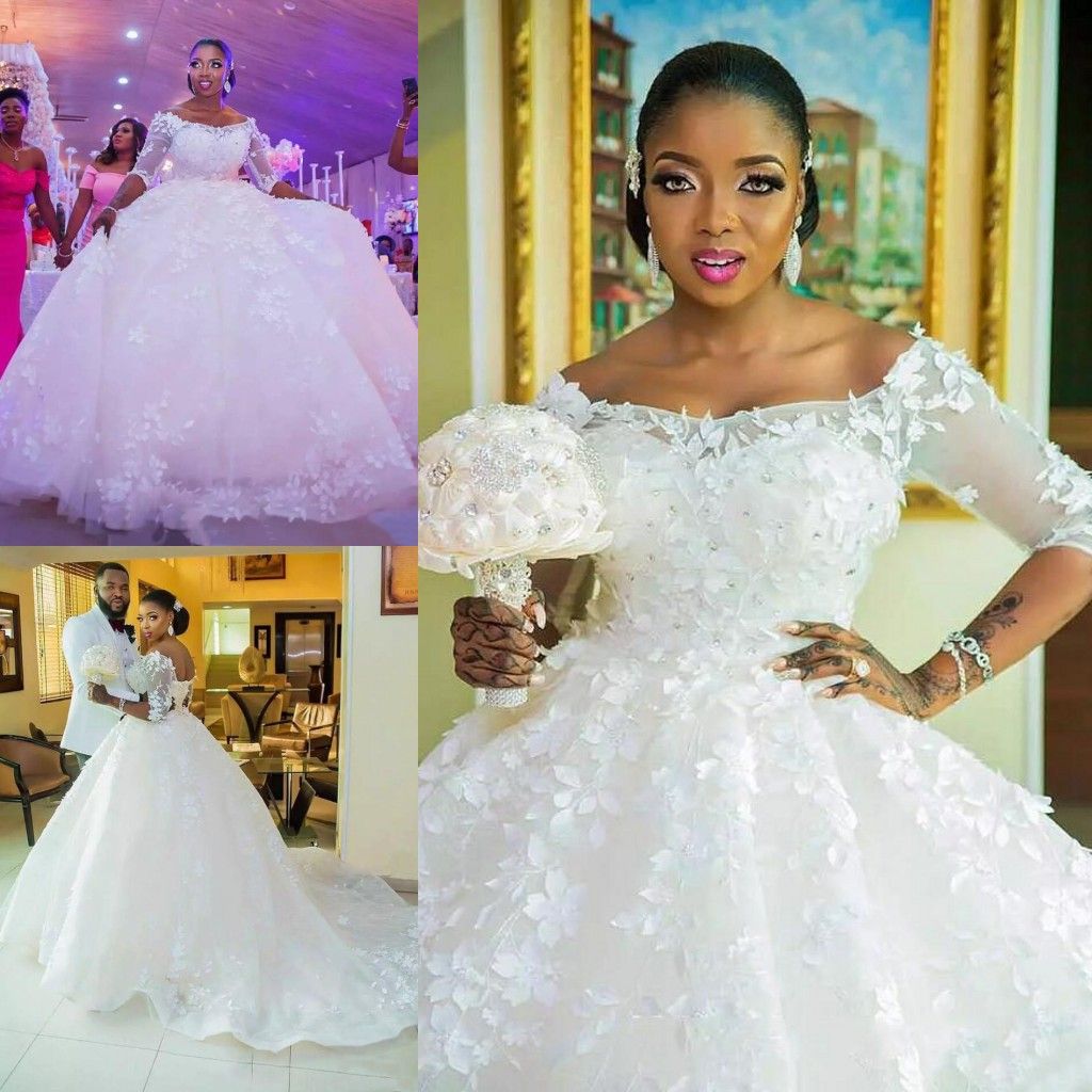 Plus Size Appliques Lace Ball Gown Wedding Dresses Sheer Half Sleeves Lace Up Back Arabic Bridal Gowns Custom Made 3d Floral Wedding Gowns