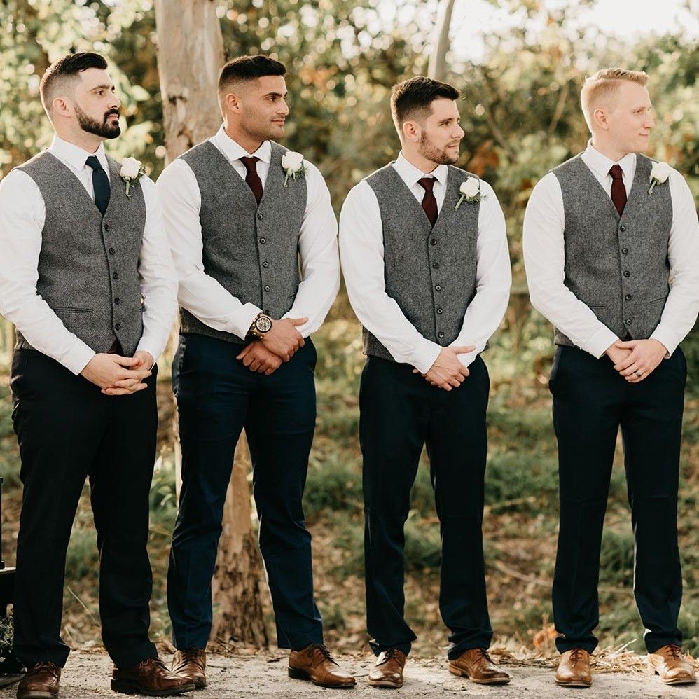 Gray Groom Vests Wool Herringbone Tweed Groomsmen Vest Slim Fit Mens Dress Attire Suit Vest Prom Wedding Party Waistcoat