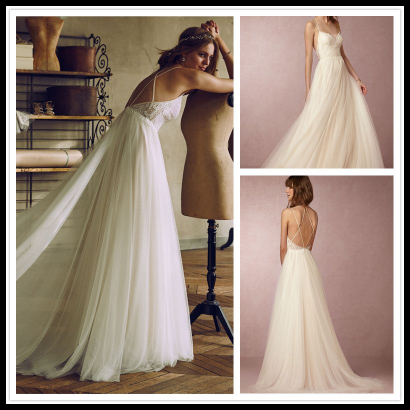 Vestidos De Noiva 2016 Bohemian Lace Wedding Dress Beach Spaghetti Strap Tulle Backless Maternity Wedding Dresses Bridal Gowns Brautkleider
