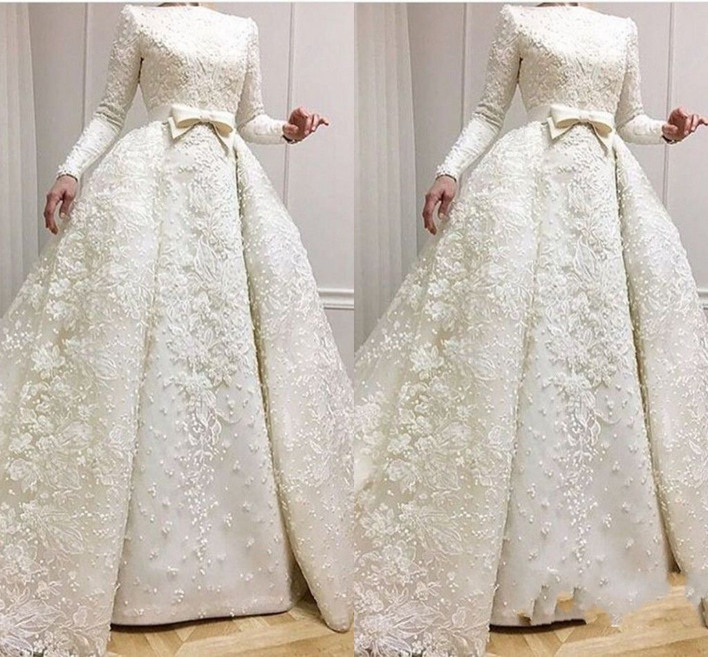 Luxury Laces Wedding Dress 2018 Muslim Long Sleeve Mermaid Wedding Dresses Bridal Gown 2018 With Detachable Train