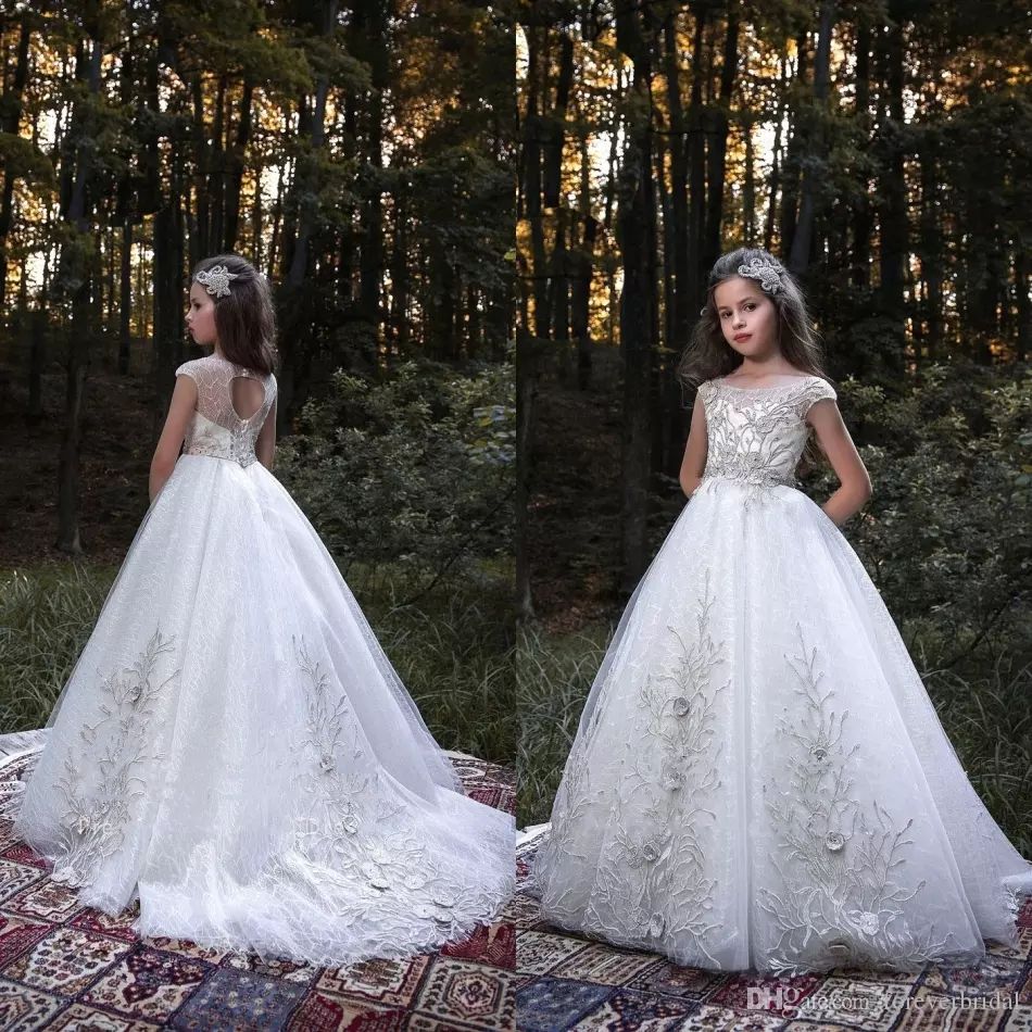 Charming Kids Dresses Noble Short Sleeve Boat Neck Girls Formal Dresses 3d Flower Appliques Organza Fabric Wedding Flower Girl Dresses