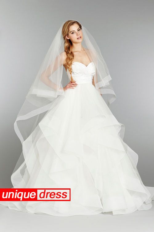 Simple Design 2015 Ball Gown Wedding Dresses Sweetheart Court Train Organza Tiers With Wedding Veil Under 150 Discount Wedding Dress Exotic Wedding