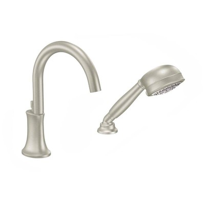Moen Brantford 2 Handle Deck Mount Roman Tub Faucet Trim Kit With Hand Shower In Brushed Nickel Valve Not Included