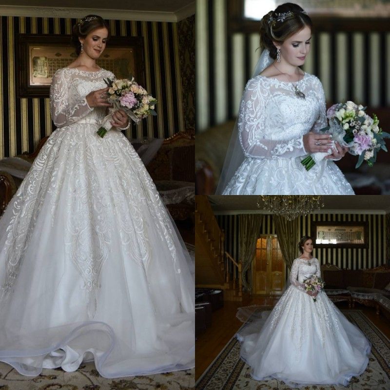 Modest Lace Ball Gown Wedding Dresses Long Sleeve Lace Appliqued Bridal Gowns Elegant Counrty Saudi Arabic Plus Size Wedding Dress