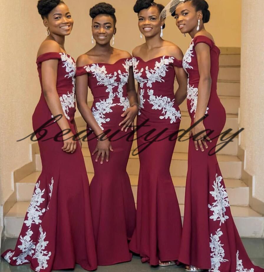 2018 South Africa Style Nigerian Bridesmaid Dresses Plus Size Mermaid Maid Of Honor Gowns For Wedding Off Shoulder Lace Formal Party Dresses