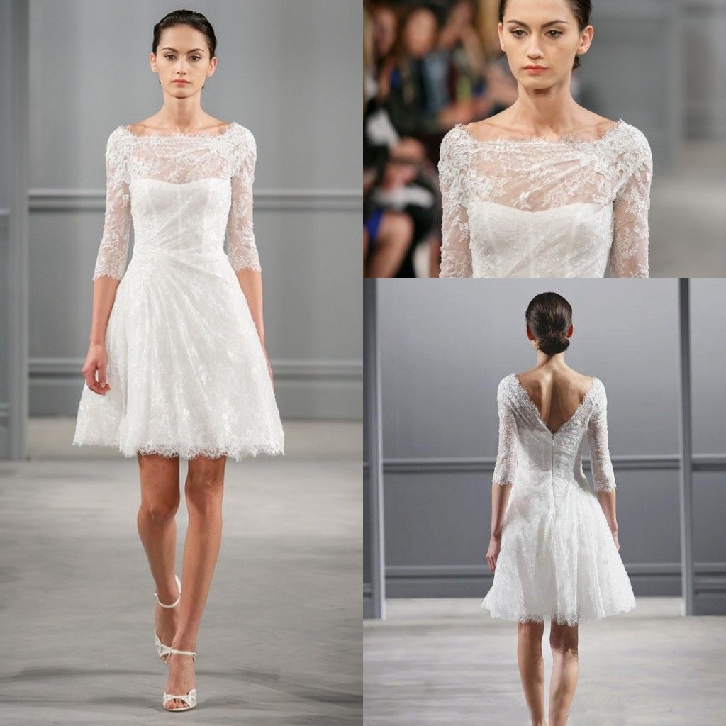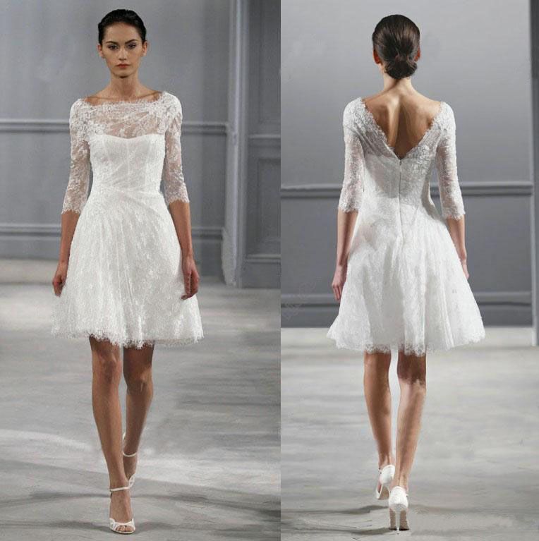 Illusion Bateau Neck 3 4 Sleeves Monique Lhuillier Spring 2017 Short Wedding Dresses Knee Length Beach Backless Wedding Dress Little White